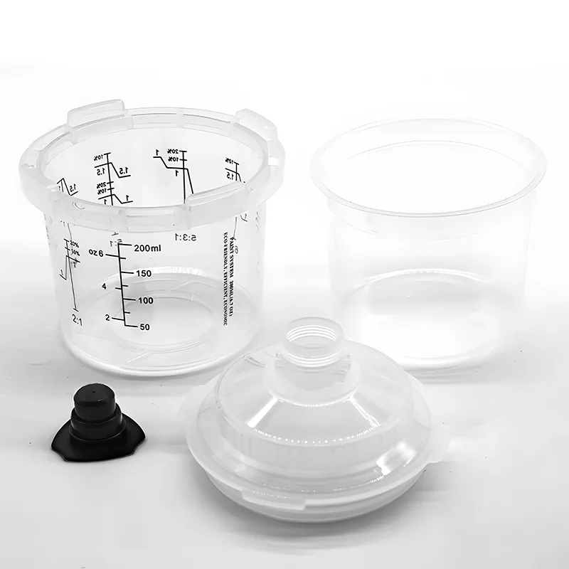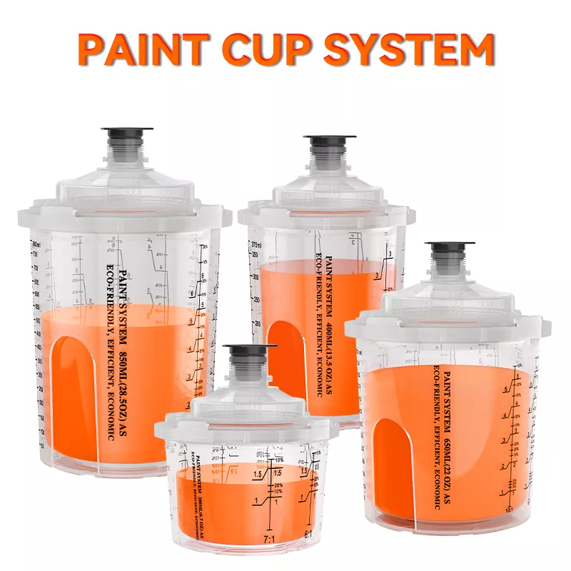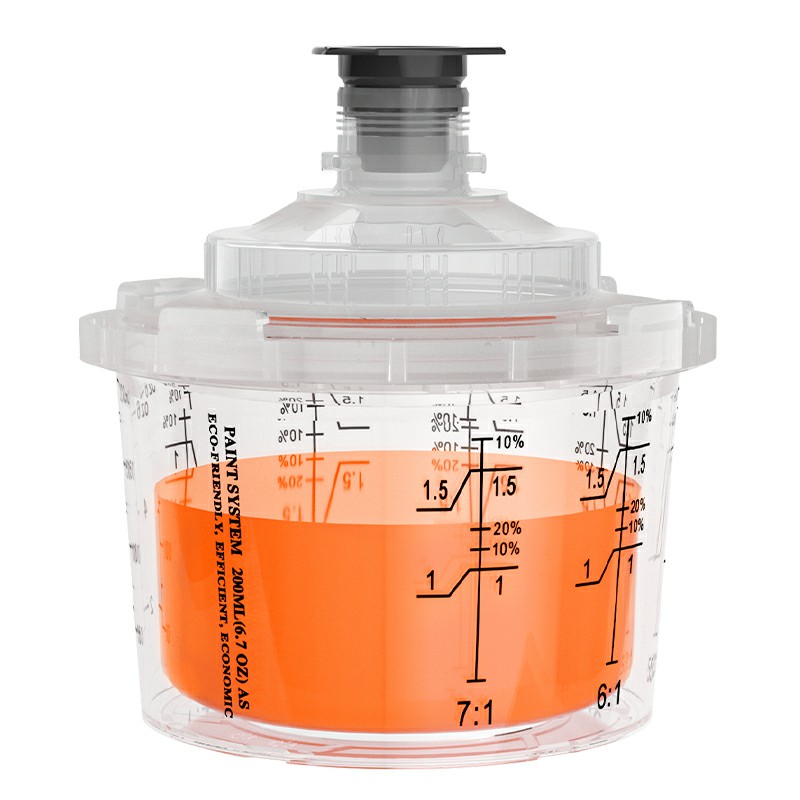 200 ml engångsspray kopp är ett engångskopplingssystem utformat för reparationer med 1 panel, det är lämpligt för områden som kräver 6,8 fl oz (200 ml) eller mindre material. Det har uppgraderat den yttre cupdesignen baserat på AYS1.0-serien. Det integrerade yttre kopplåset klarar sig utan krage, vilket underlättar monteringen och demonteringen av spraykoppen; AYS3.1 Series Paint Cup -systemet är Ayspats Newst -engångssprutpistolkopp, vilket avsevärt förbättrar effektiviteten och kvaliteten på hela processen för färgblandning, sprutning och förvaring.