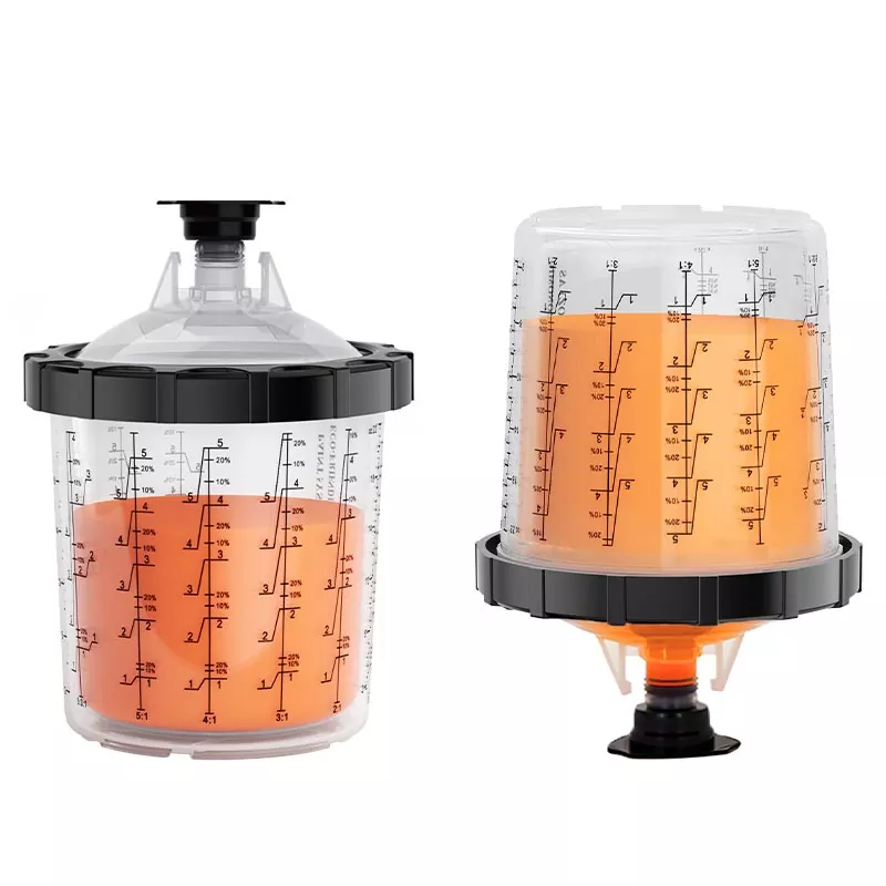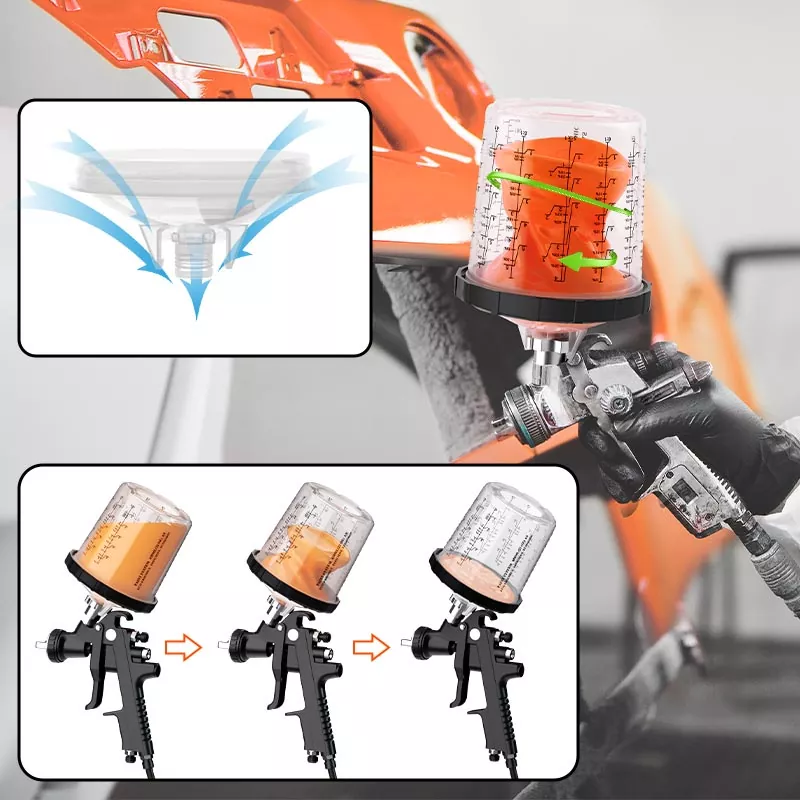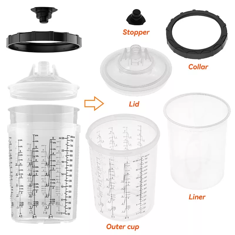 Ayspat -engångssprutningssystemet består av fem delar: en yttre kopp med en skala, en engångs -PE -foder, ett lock med ett filter, en krage som förbinder koppen och locket och en plugg med en bas. Detta system kombinerar flera funktioner som färgblandning 、 Filtrering 、 Spraying 、 Lagring, förenklar förberedningsprocessen för spraymålning och sparar kostnaderna för att köpa separata pappersfallar och måla blandningskoppar.